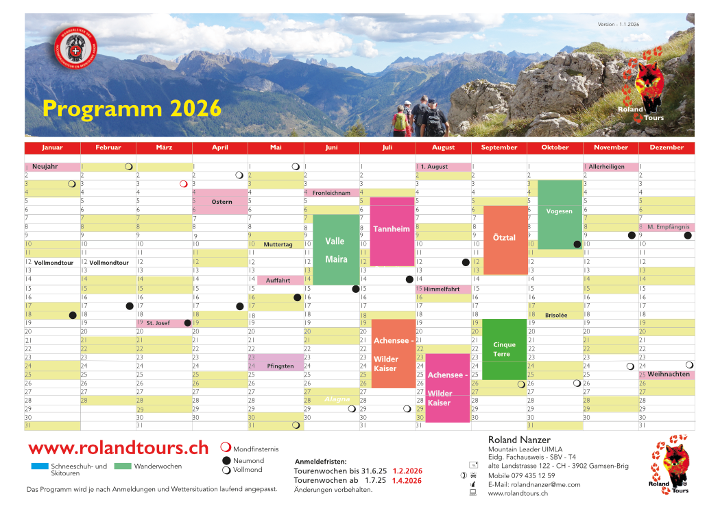 Tagestouren / Mehrtagestouren / Events oder Privatanlässe nach Vereinbarung.